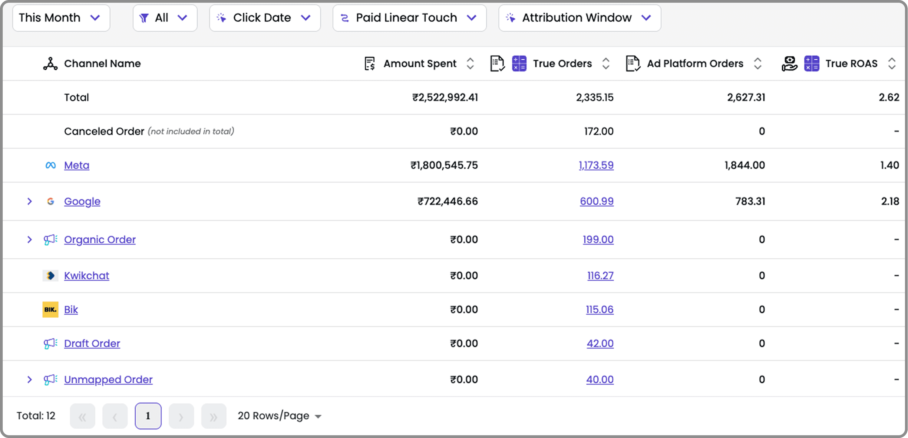 Link your Meta and Google Ads in one click to unify campaign data, ad spend, and conversions.