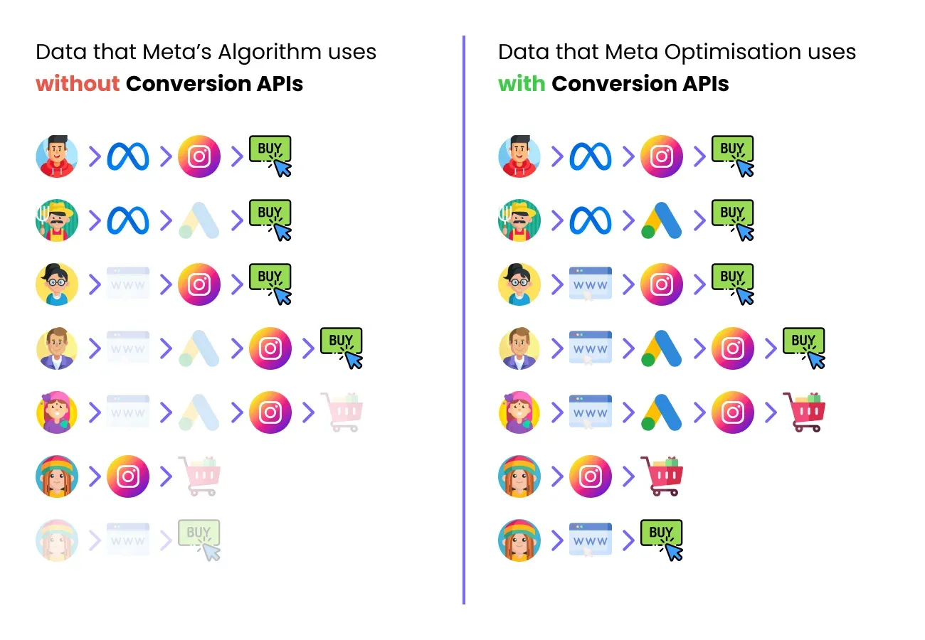 Improved Attribution Models: Accurate attribution is the cornerstone of effective advertising. By receiving reliable conversion data, Meta and Google can better identify which campaigns, ad sets, or creatives are driving results. This allows businesses to allocate budgets more efficiently, reducing waste and maximising ROI.