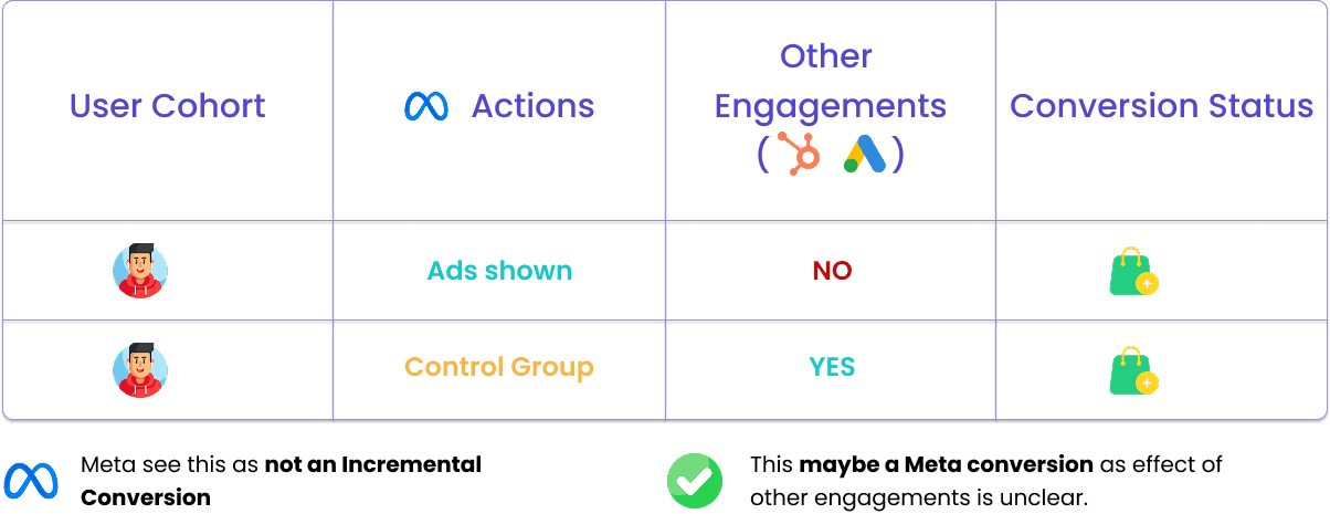 On the other hand for targeted cohorts, Meta will get a false signal of incremental results and might over allocate budgets resulting in Ad spamming.