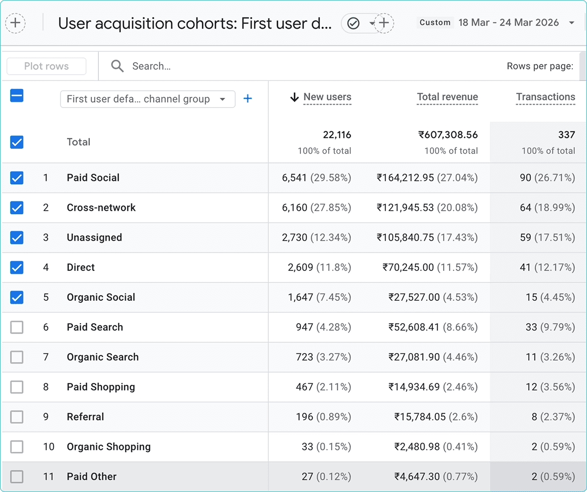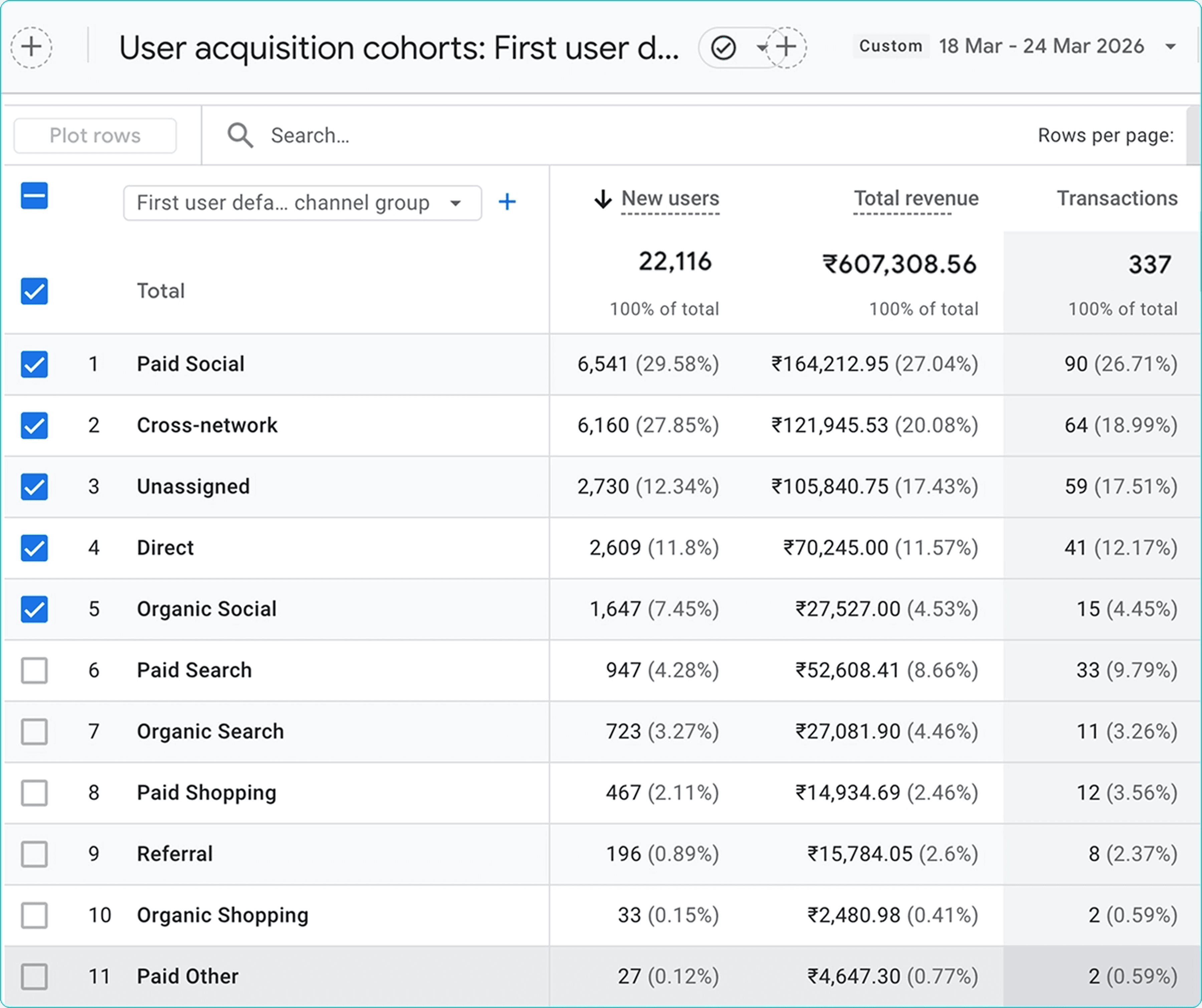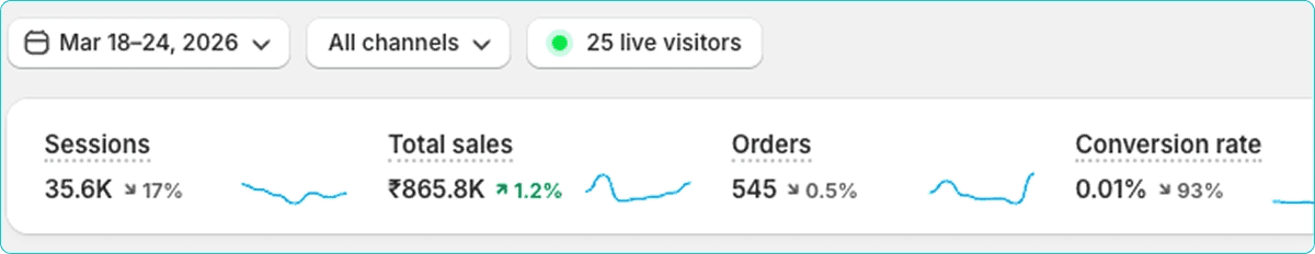 We compared the numbers from Shopify, BooleanMaths & GA4 for a Fashion Brand for the same Time Period - 18th March to 24th March 2025.