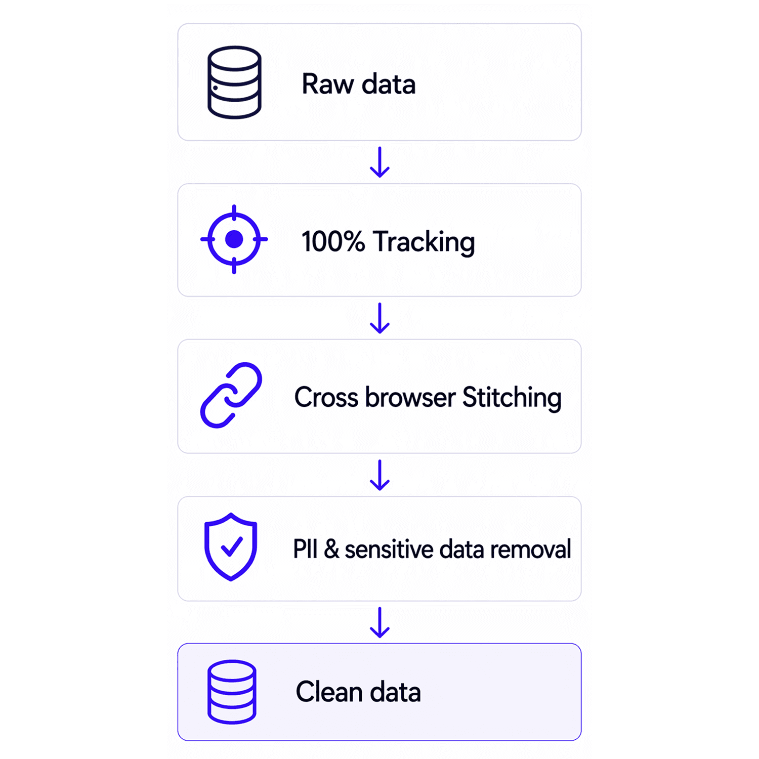 100% Tracking · Cross browser Stitching · PII & sensitive data removal
