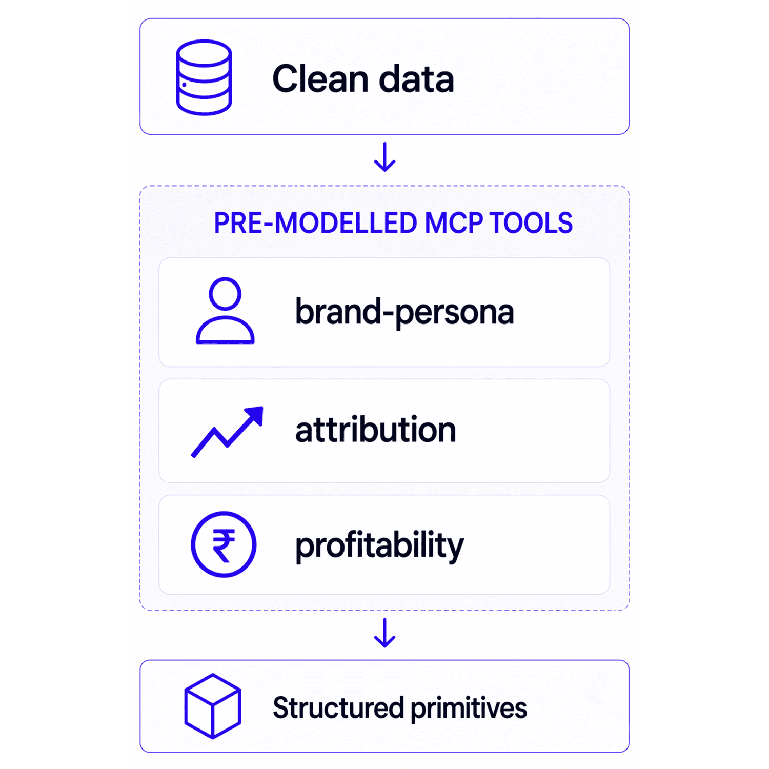 Pre-modelled MCP tools: brand-persona, attribution, profitability, cohorts, benchmarks, fatigue, creatives, ads