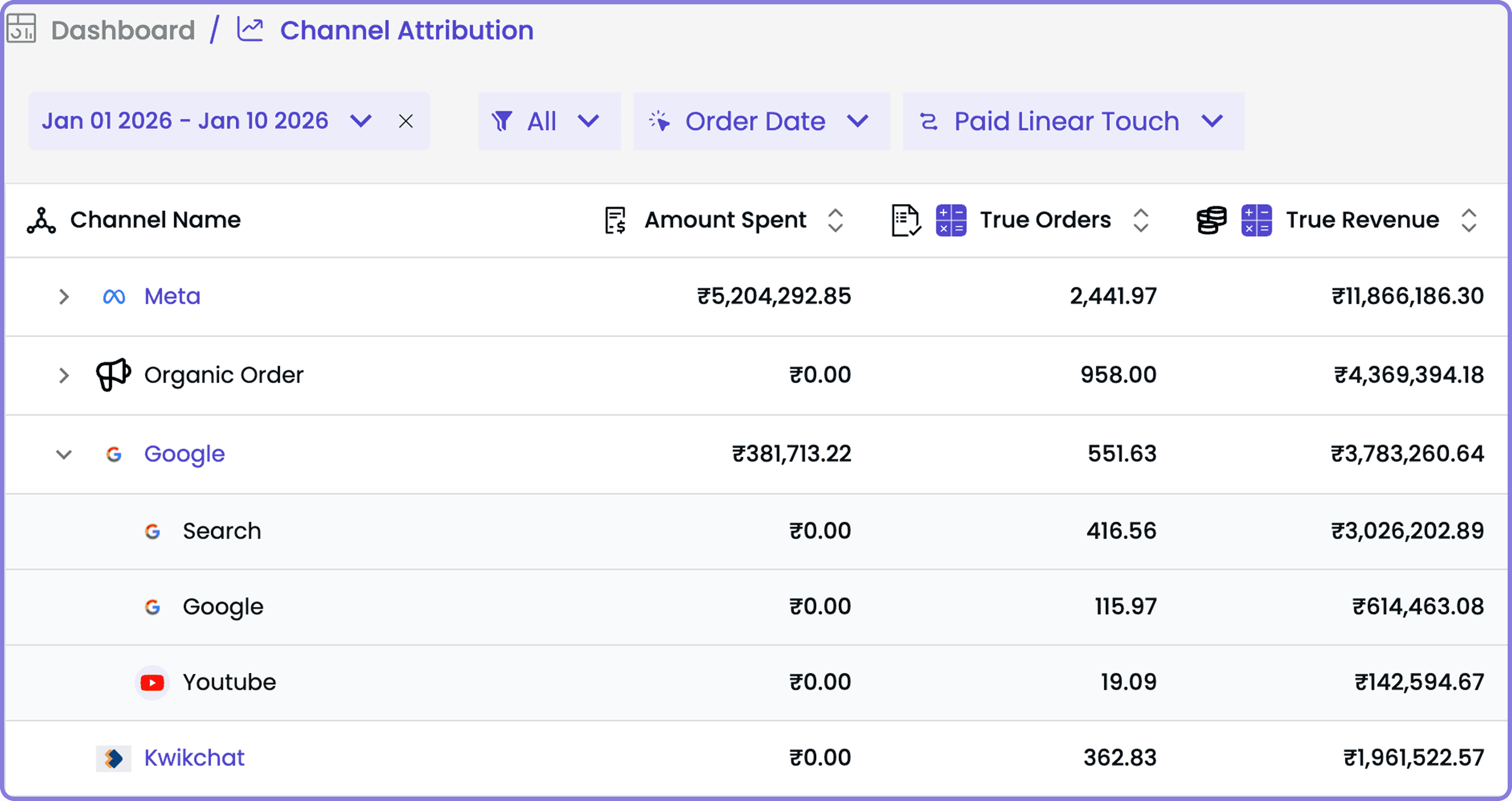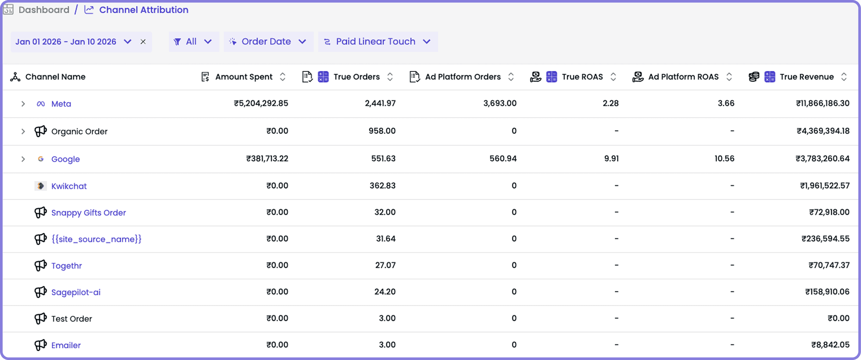 Once the data foundation was stable, we enabled multi-touch attribution with cross-channel journey stitching, giving the team a clear view of how Meta, Google, Organic, and owned channels worked together.