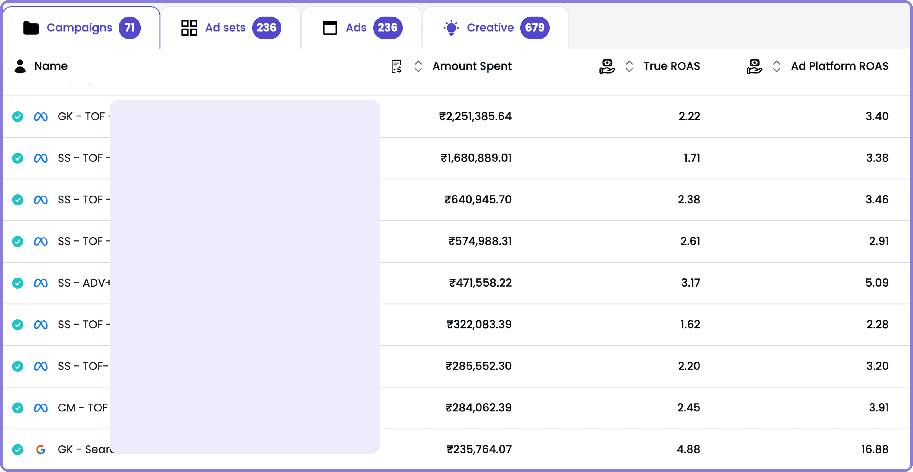 Profitability was monitored daily, and campaigns with high True ROAS were scaled aggressively, while inefficient spend was quickly corrected.