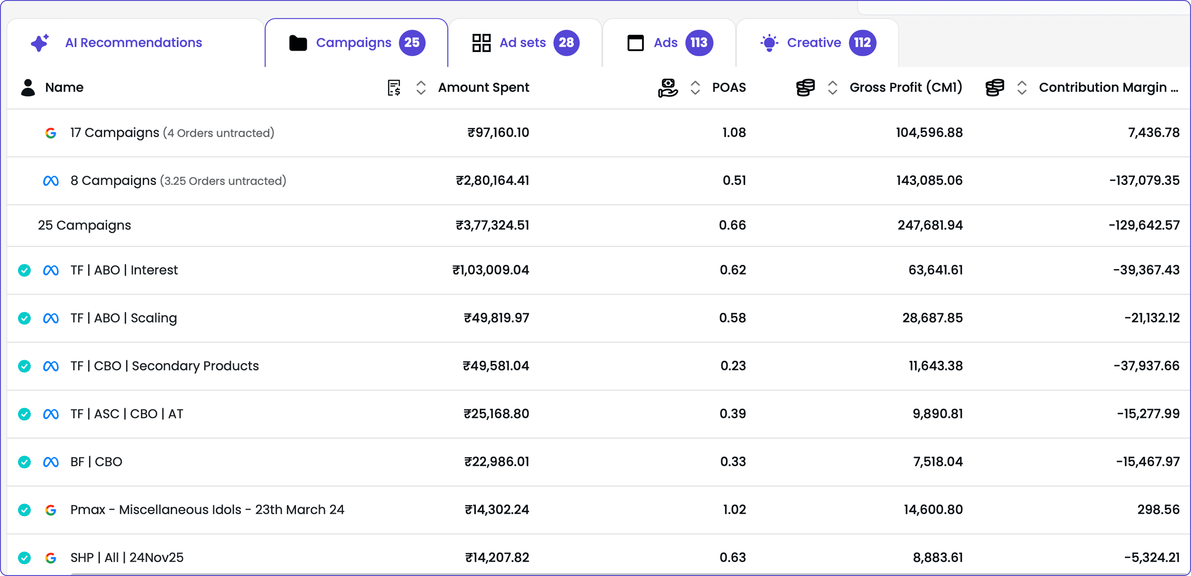 Meta/Google ROAS ignores logistics & returns. High revenue campaigns leak margin. Fulfillment costs stay invisible.